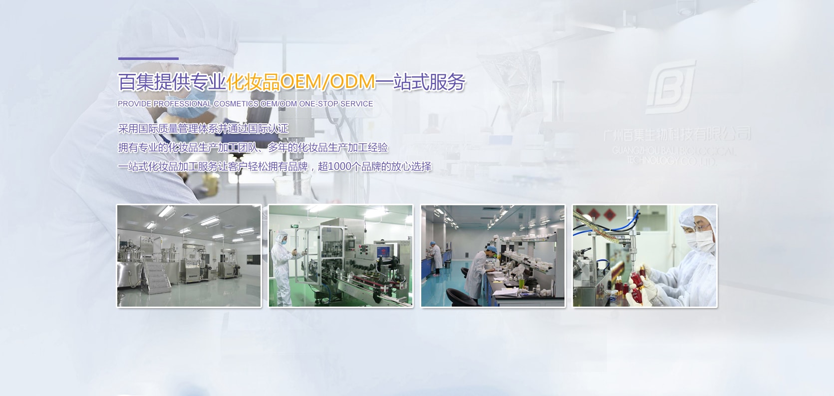 百集生物擁有16位專業(yè)工程師,79多位研發(fā)人員,6000多款成熟配方 百集生物研發(fā)中心占地3000多平方米,擁有成熟的研發(fā)團隊及完善的研發(fā)設(shè)施,使用納米技術(shù)、滲透壓技術(shù)、 液晶微乳化技術(shù)等,已經(jīng)擁有一系列穩(wěn)定性高、滲透性強、吸收性好、效果顯著的成熟配方。
